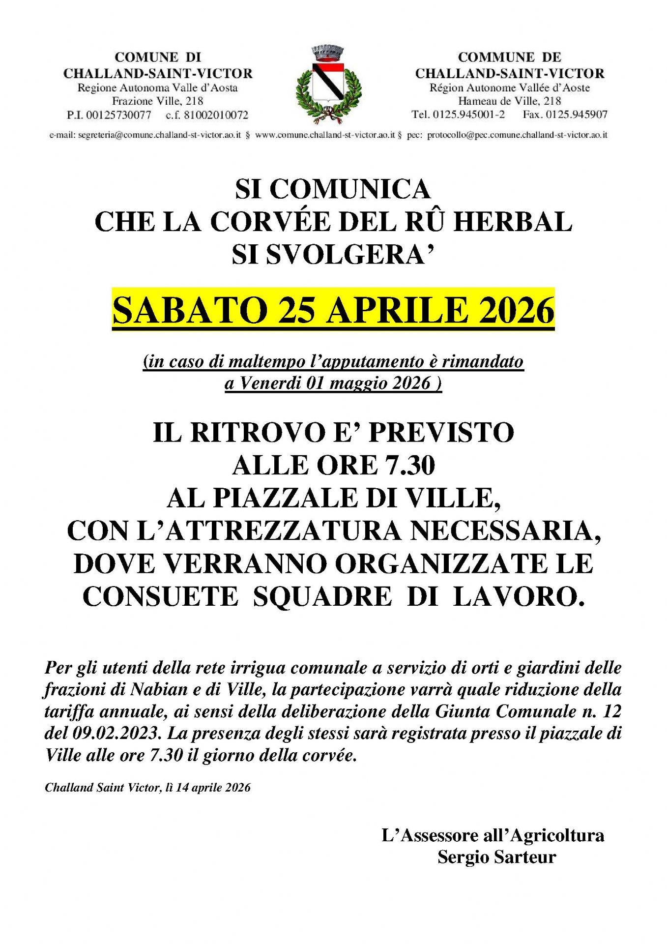 Sabato 25 aprile 2026