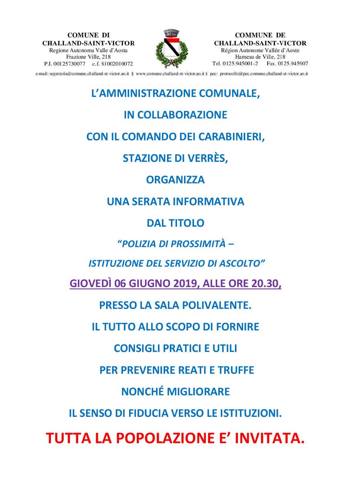 “POLIZIA DI PROSSIMITÀ – ISTITUZIONE DEL SERVIZIO DI ASCOLTO”