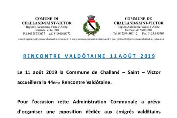 Le 11 août 2019 la Commune de Challand – Saint – Victor accueillera la 44ème Rencontre Valdôtaine.